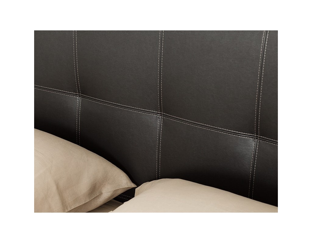 По своему стилистическому решению такая кровать гармонично впишется в различные современные интерьеры, станет отличным украшением спальни. Насыщенный коричневый цвет качественной обивки из винила придает кровати благородный и элегантный вид. Небольшие и изящные хромированные ножки конструкции подчеркивают ее современный дизайн, придают изделию устойчивость и завершенный эстетический вид.