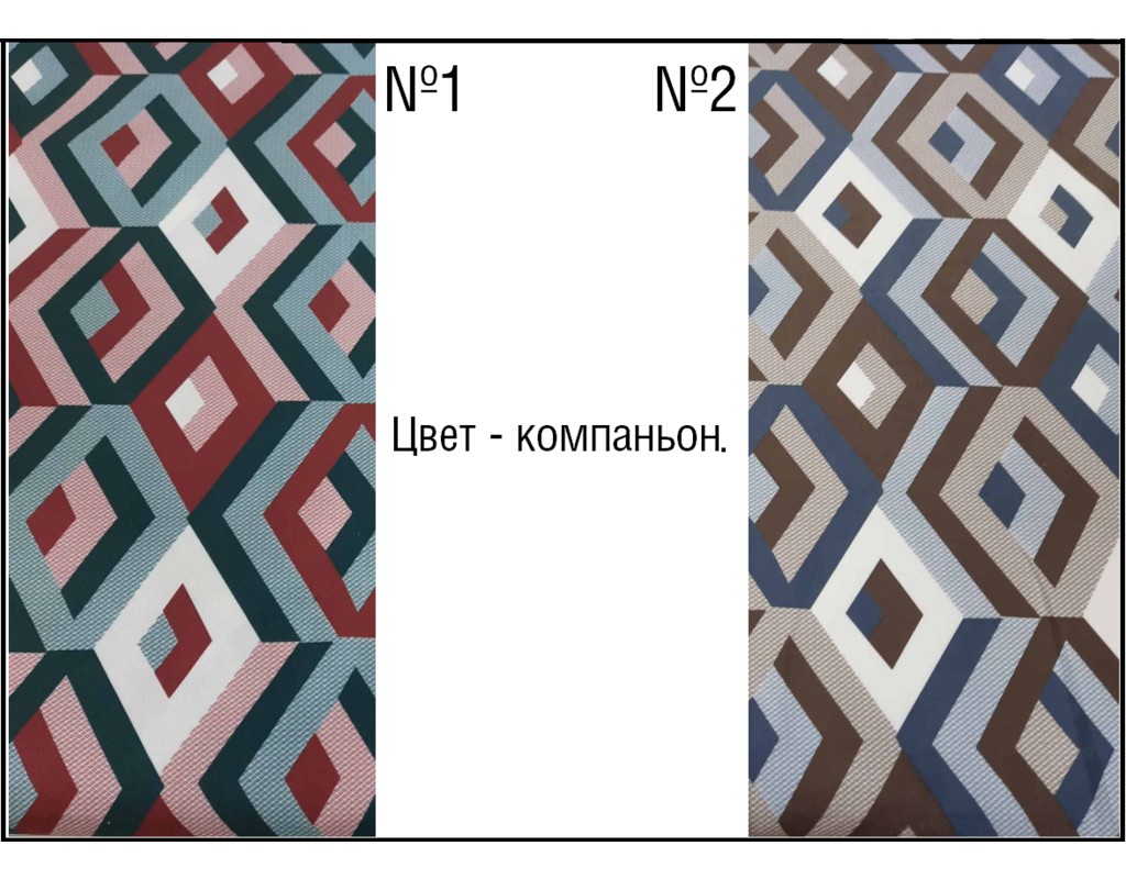 Софа выполнена в 2х цветах, основной из палетки — Velutto (цвет на выбор), и цвет компаньон — 2 варианты с принтом.