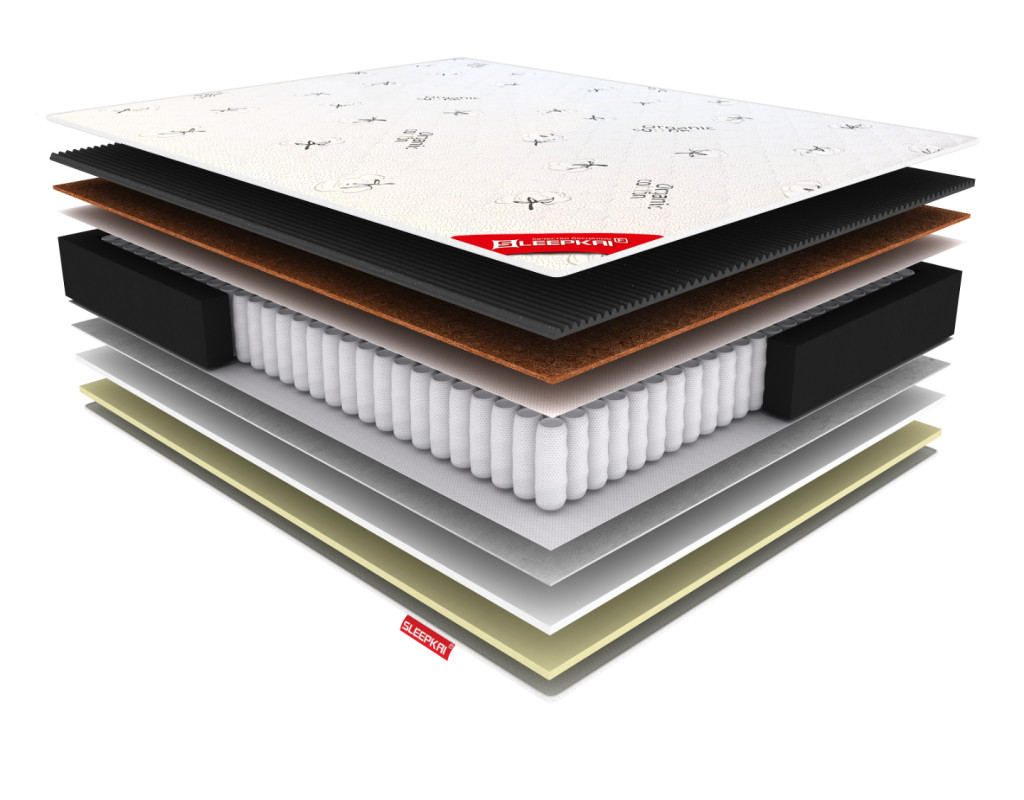 Латексированная кокосовая койра - это волокна кокосового ореха, пропитанные натуральным латексом. 100% натуральный материал, используемый для изготовления жестких матрасов. Добавляет матрасу прочность и жесткость, хорошо вентилируется, не вызывает аллергии. Не является средой обитания клещей и прочих паразитов. Обладает самой низкой остаточной деформацией из всех известных наполнителей для матрасов (при многократной физической нагрузке минимально теряет в толщине)