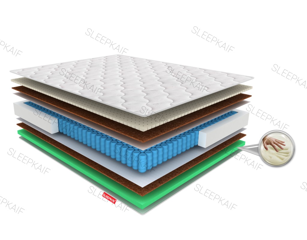 Состав: Натуральный латекс, натуральная латексированная кокосовая койра,Visco memory foam.