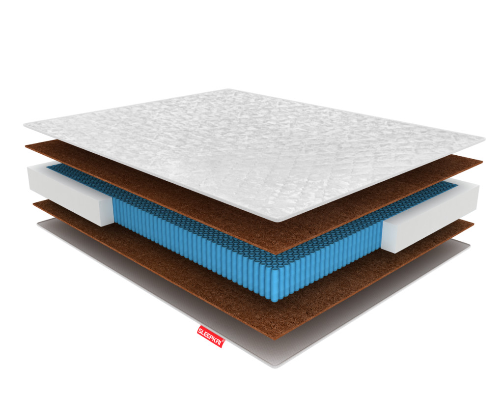 Кокосовые волокна, прошедшие процедуру латексирования, очень хорошо сочетаются с основой матраса – плотная кокосовая койра прогибается лишь в тех местах, где увеличивается давление. Таким образом, удается не только создать уютное спальное место, но и существенно продлить срок службы самого изделия. Для защиты от деформации по периметру матраса установлен усиленный каркас.
