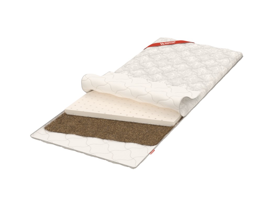 Латексированная кокосовая койра - это волокна кокосового ореха, пропитанные натуральным латексом. 100% натуральный материал, используемый для изготовления жестких матрасов. Добавляет матрасу прочность и жесткость, хорошо вентилируется, не вызывает аллергии. Не является средой обитания клещей и прочих паразитов. Обладает самой низкой остаточной деформацией из всех известных наполнителей для матрасов (при многократной физической нагрузке минимально теряет в толщине)
