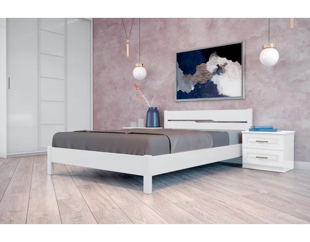 Кровать выполнена из массива сосны.