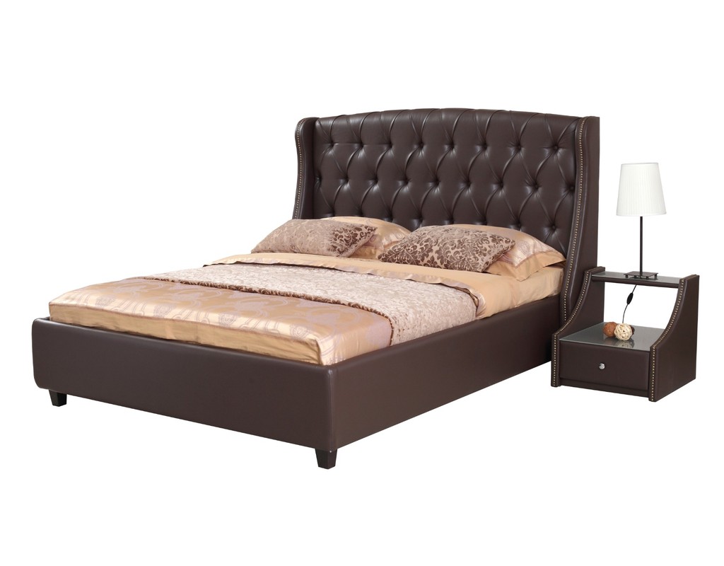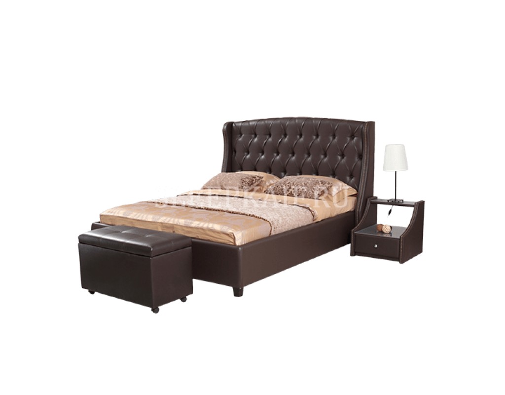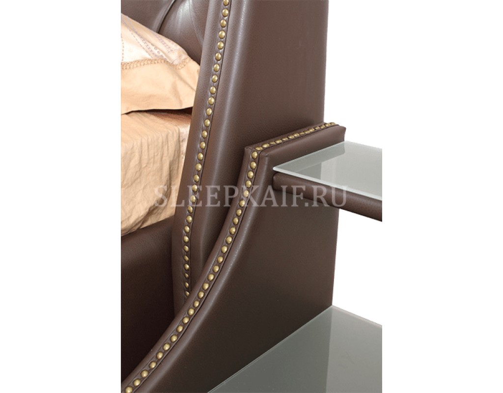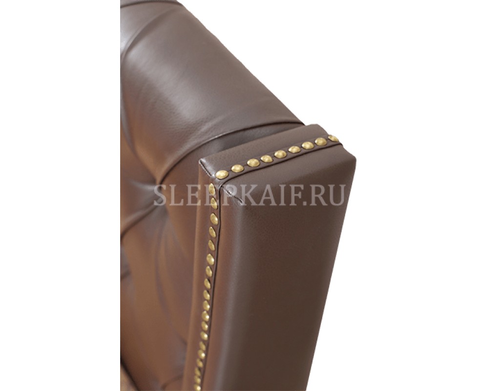 Предлагаем вашему вниманию интерьерную кровать Техас. Эффектный и дерзкий дизайн кровати словно переносит нас в атмосферу увлекательного вестерна. Подчеркнутая добротность отделки прекрасно гармонирует с насыщенным цветом горького шоколада. Высокое изголовье с фигурными боковинами и металлическими заклепками цвета состаренной бронзы не останется незамеченным, внесет в интерьер спальни нотки роскоши и брутальной элегантности.
