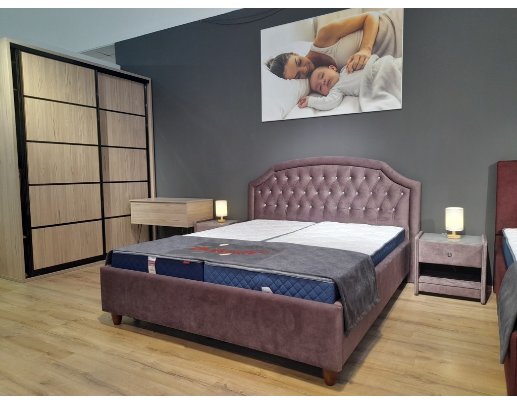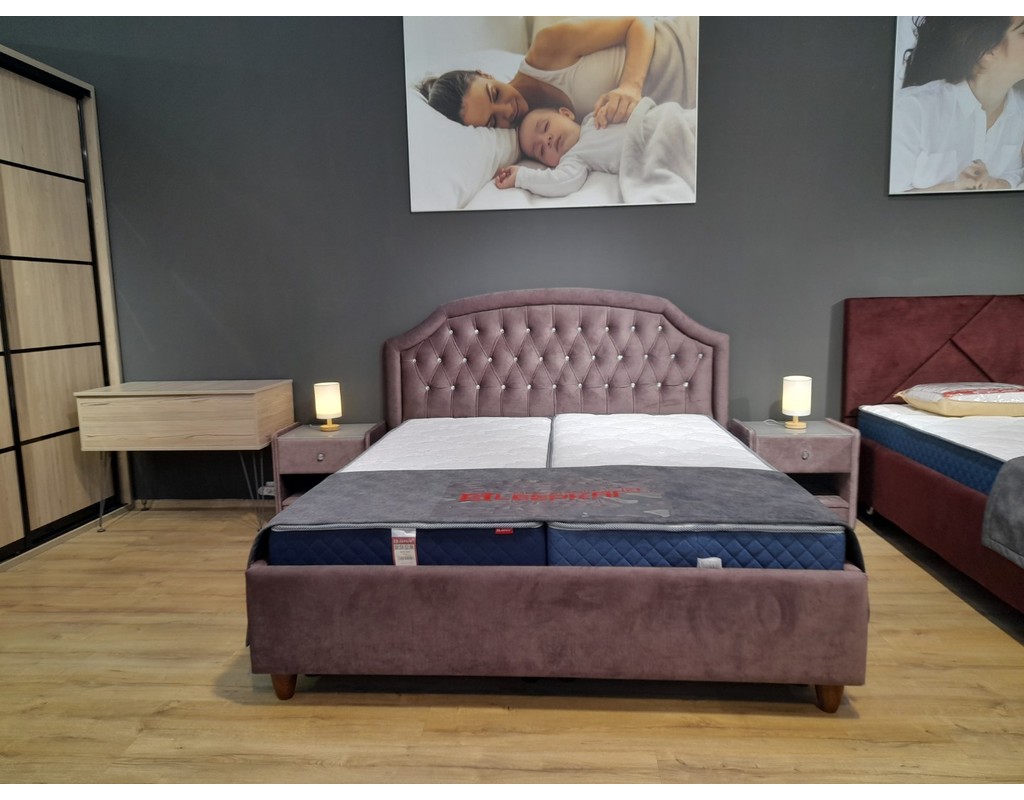 Возможно изготовление кровати с подъемным механизмом и бельевым ящиком; Комплектация утяжек кровати стразами, жемчугом или пуговицами.