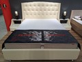 Возможно изготовление кровати с подъемным механизмом и бельевым ящиком; Комплектация утяжек кровати стразами, жемчугом или пуговицами.